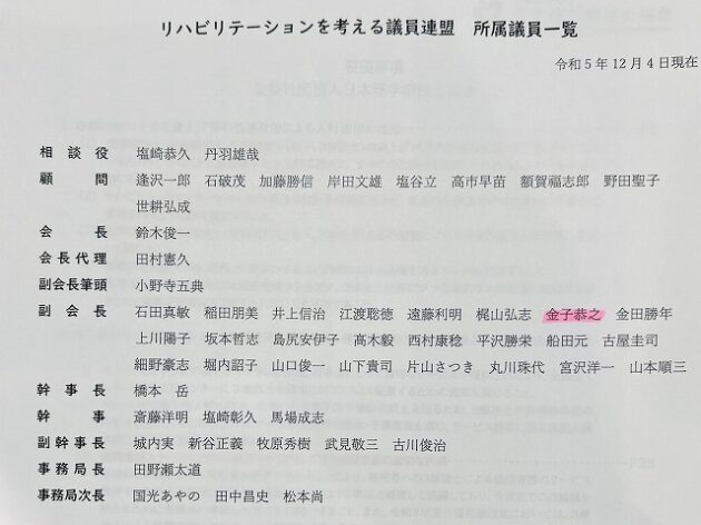 自民党 リハビリテーションを考える議員連盟 総会 ※副会長