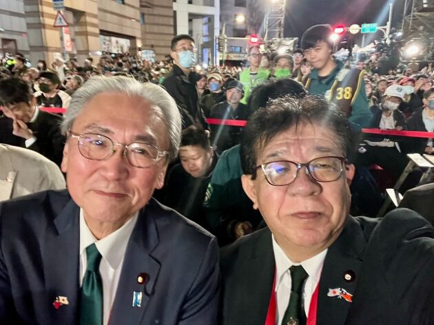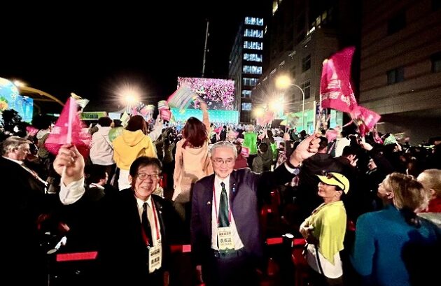 台湾「 民進党 当選報告会 」にて、台湾 総統 選挙に勝利された頼清徳〔副総統〕、副総統に就任される蕭美琴〔前 駐米大使〕に、お祝い挨拶 ※超党派「 日華議員懇談会 」古屋圭司 会長、金子恭之 幹事長代理
