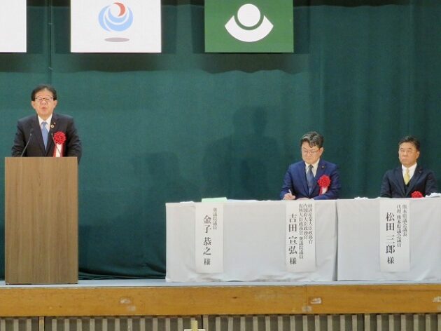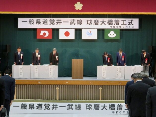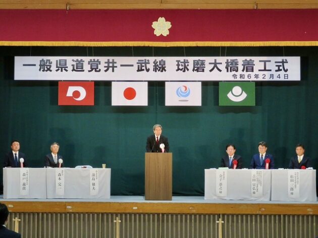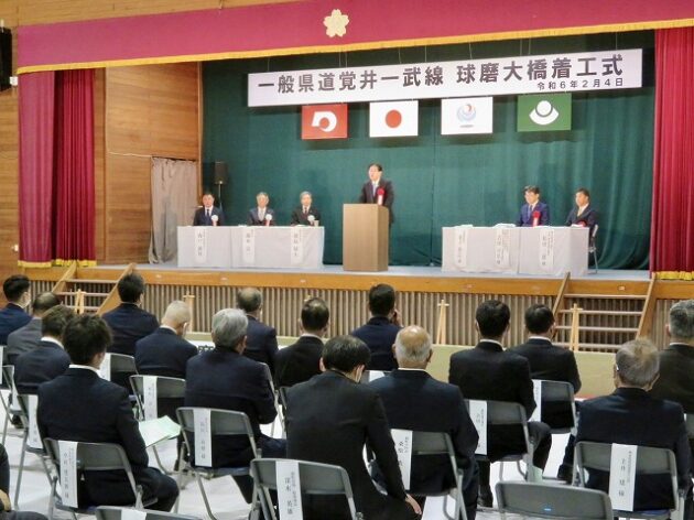 国土交通省・熊本県・錦町 共催「 一般県道 覚井一武線「 球磨大橋 」 着工式 」※式典( 錦町立 木上小学校 体育館 )