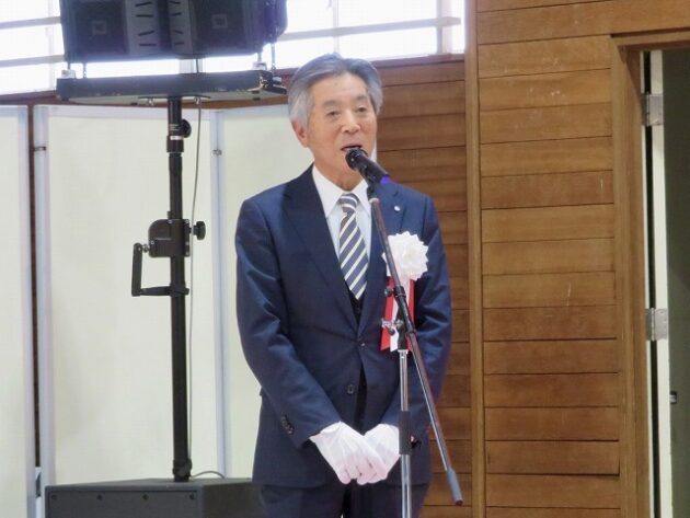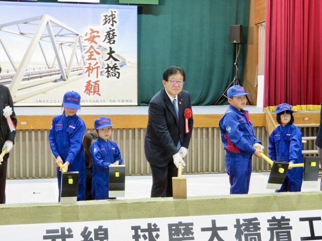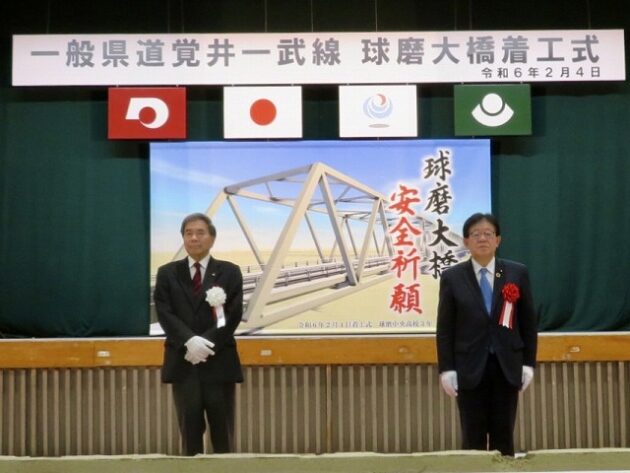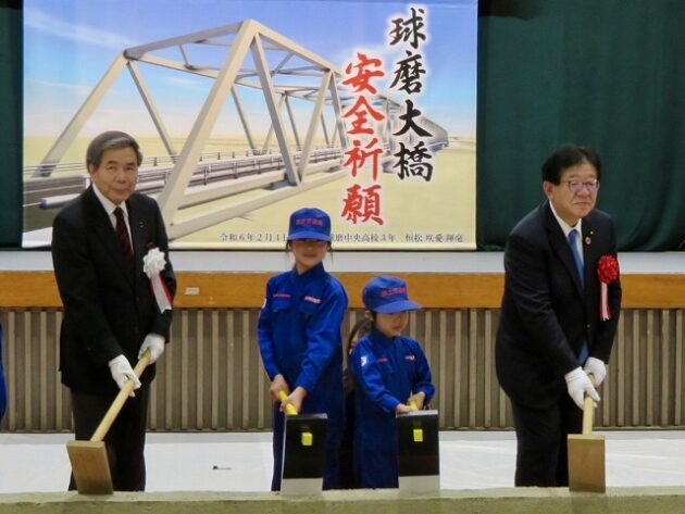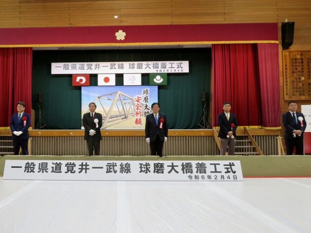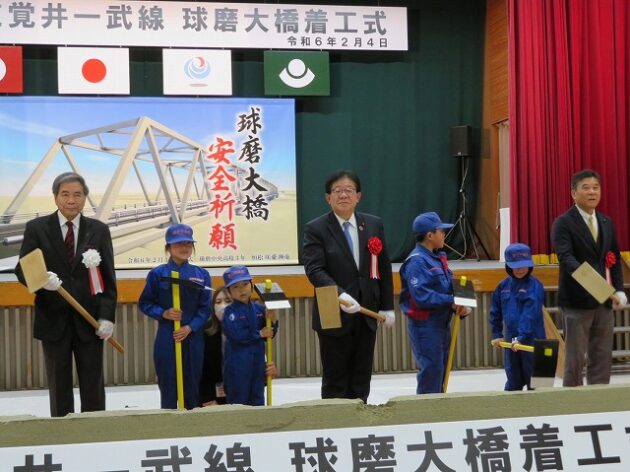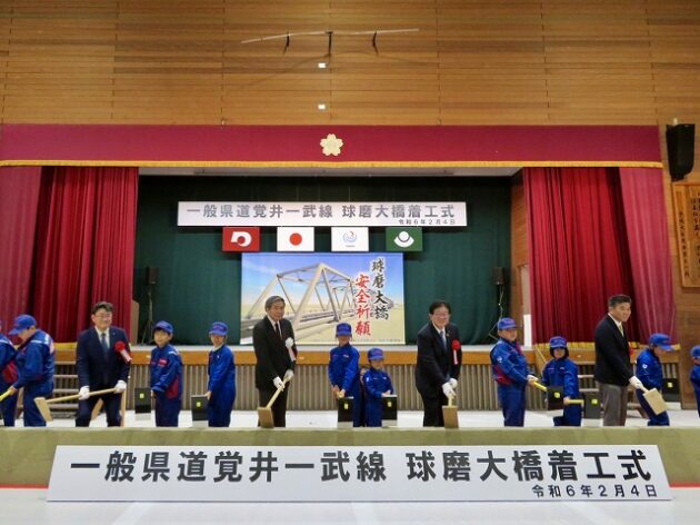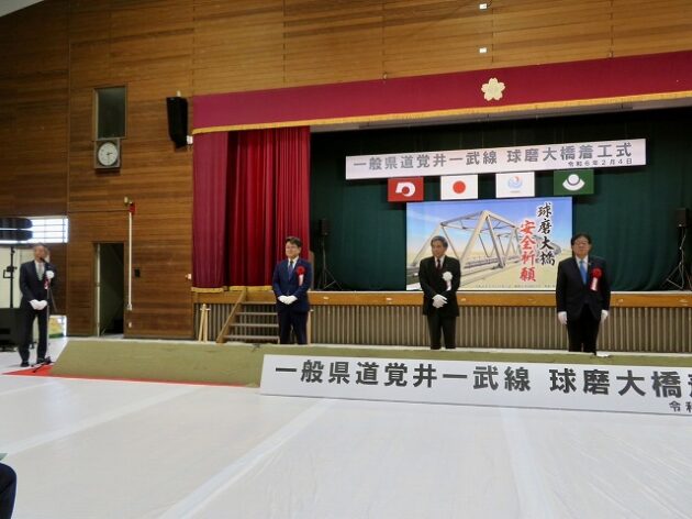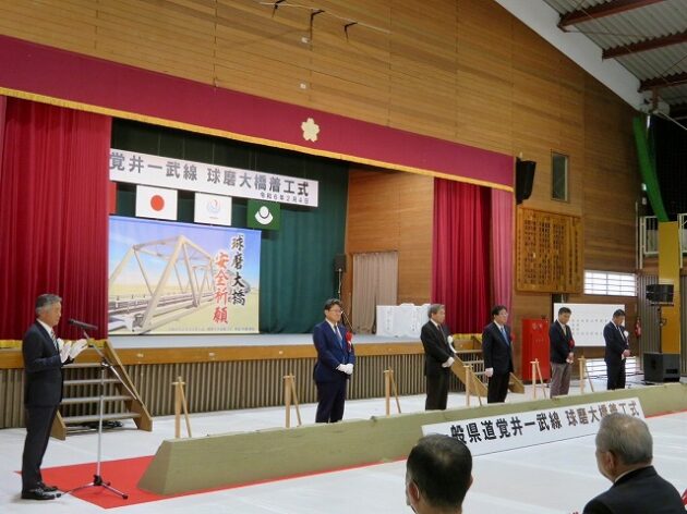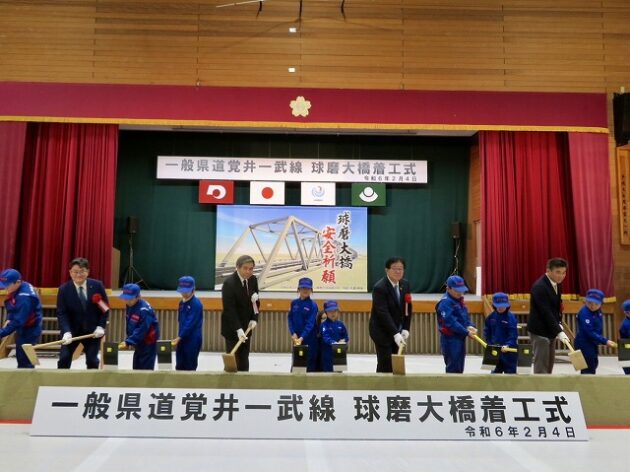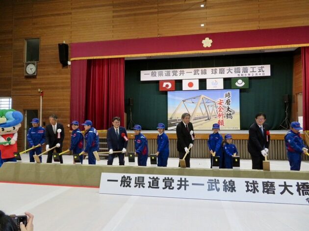 国土交通省・熊本県・錦町 共催「 一般県道 覚井一武線「 球磨大橋 」 着工式 」※鍬入れ式( 錦町立 木上小学校 体育館 )