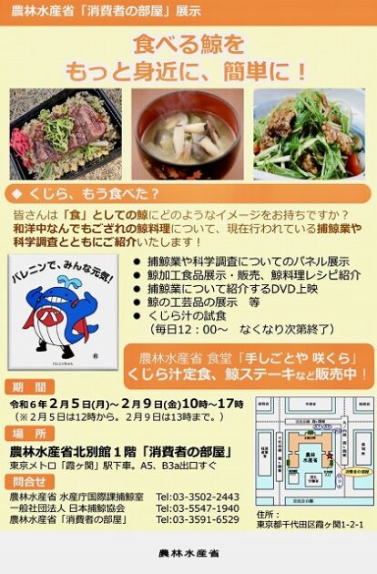 農林水産省「 クジラに関する特別展示〔 食べるクジラをもっと身近に、簡単に! 〕 」見学、昼食〔 クジラ料理 〕