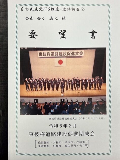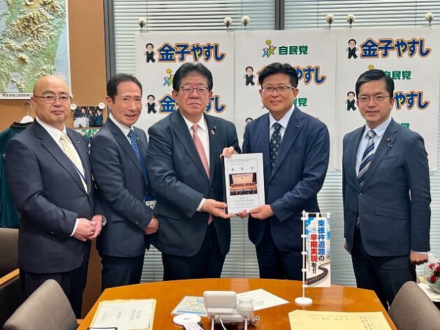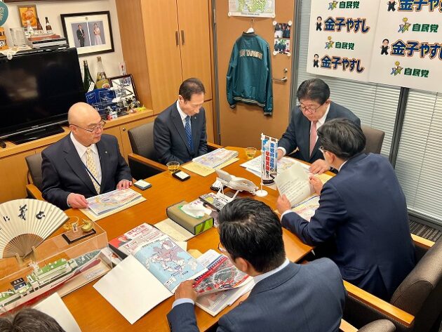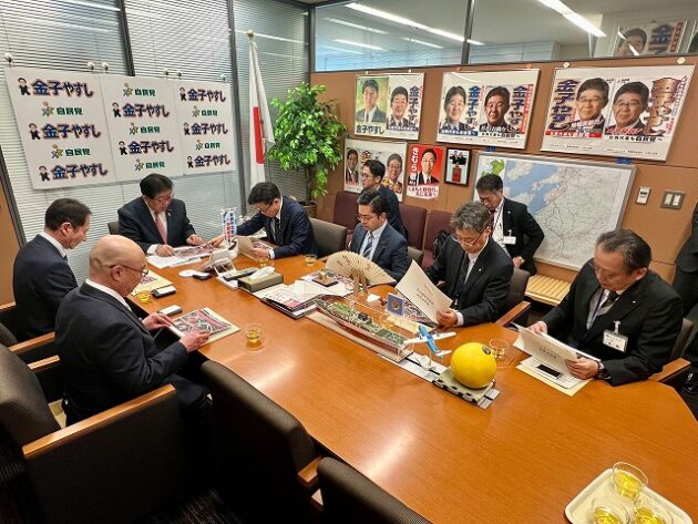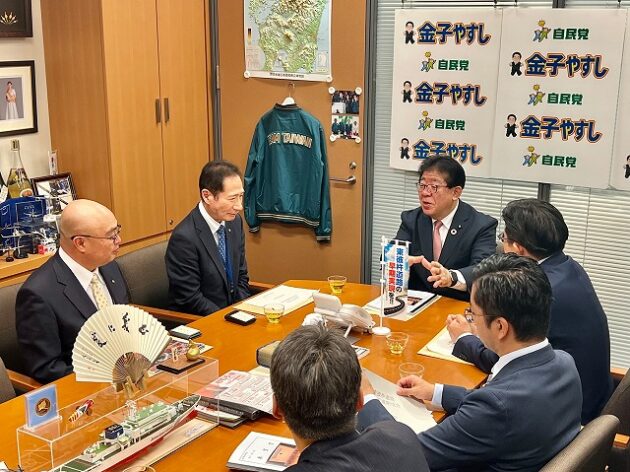 長崎県「 東彼杵道路建設促進期成会 」宮島佐世保市長、岡田東彼杵町長、波戸川棚町長ほか 要望来室( 会館 ) ※金子容三代議士 同行