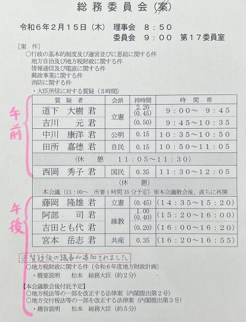 衆議院 総務委員会 ※午前の部〔 所要2時間40分 〕