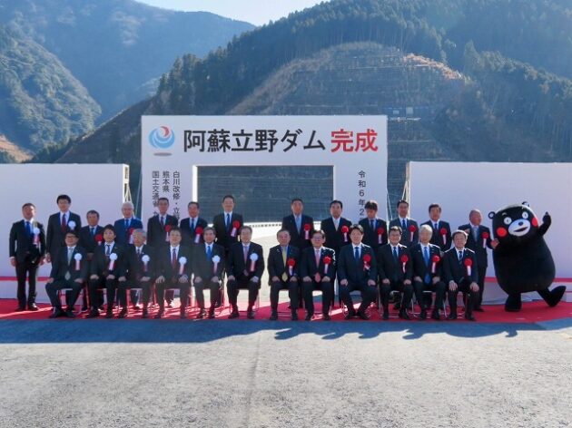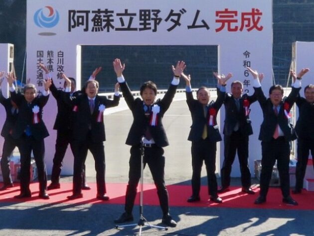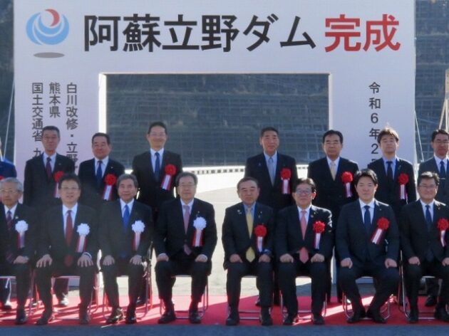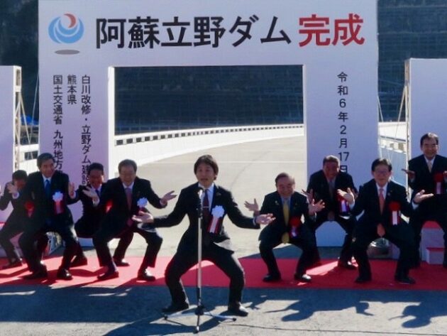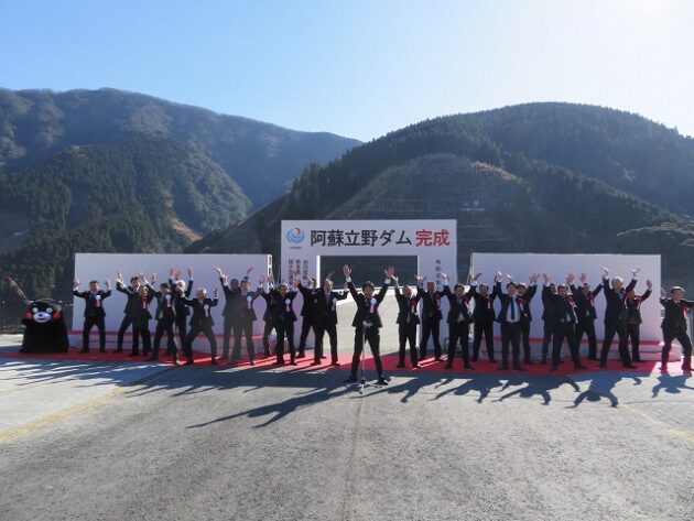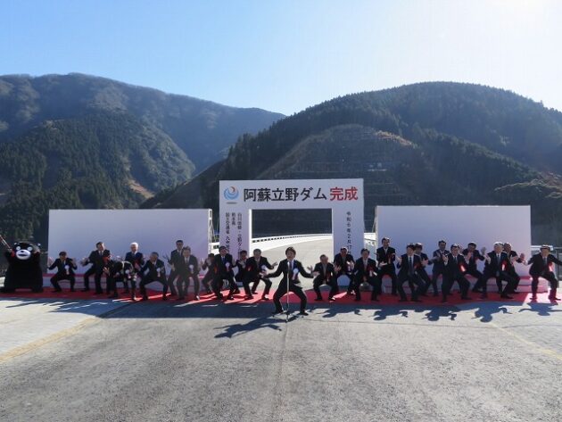 「 阿蘇立野ダム完成式典 」万歳三唱、記念撮影( 南阿蘇村・阿蘇立野ダムサイト )
