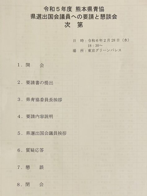 熊本県農協青壮年部協議会「 熊本県選出国会議員への要請と懇談会 」