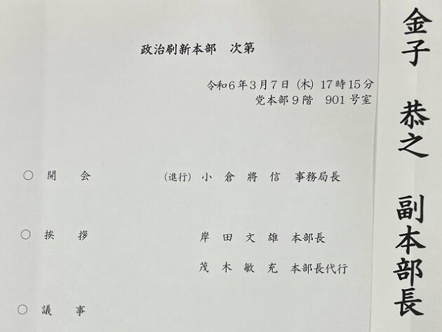 自民党 政治刷新本部 ※副本部長 所要1時間45分
