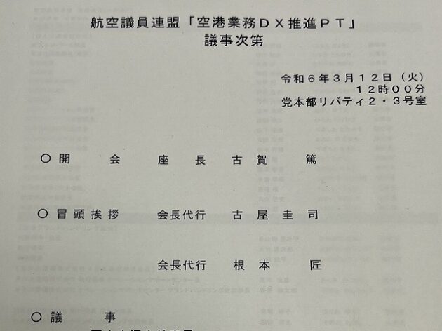 自民党 航空議員連盟「 空港業務DX推進PT 」