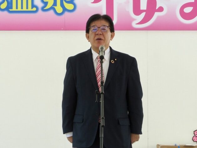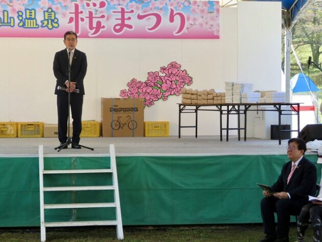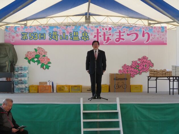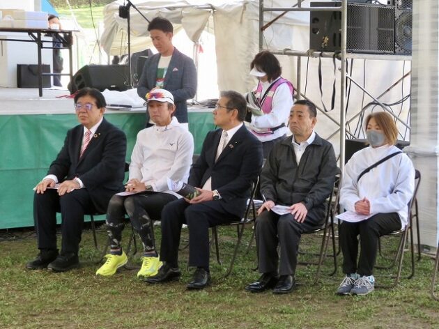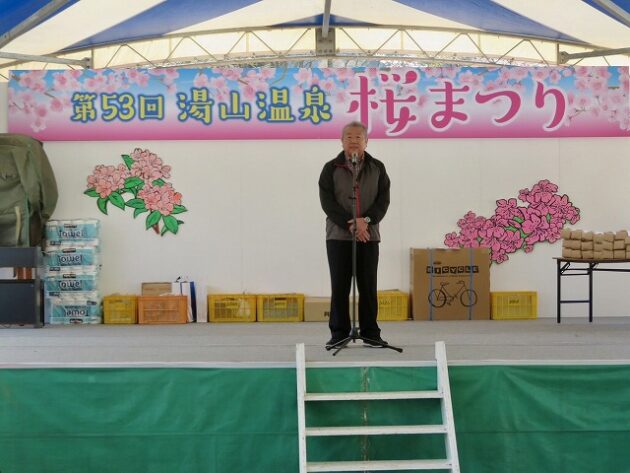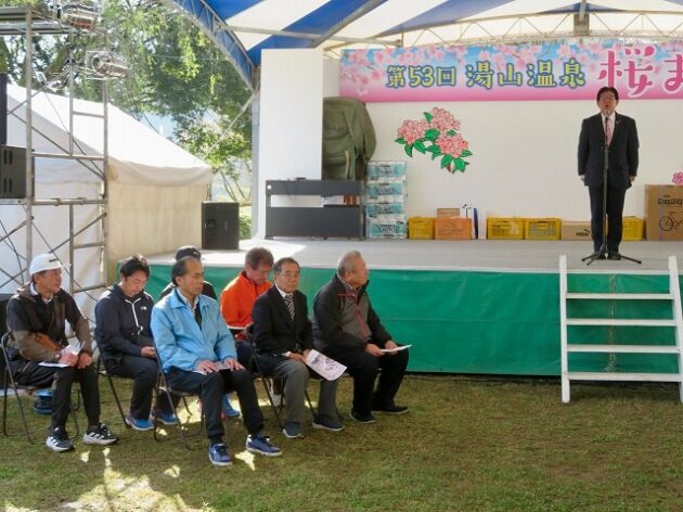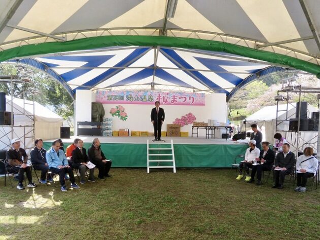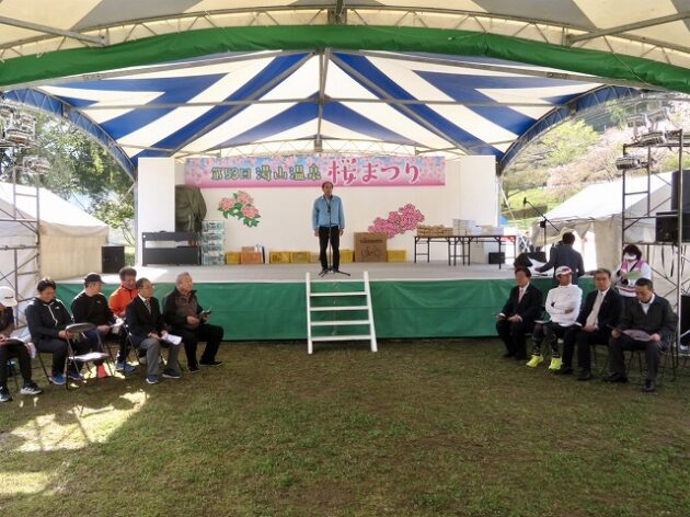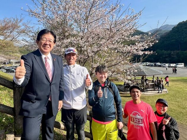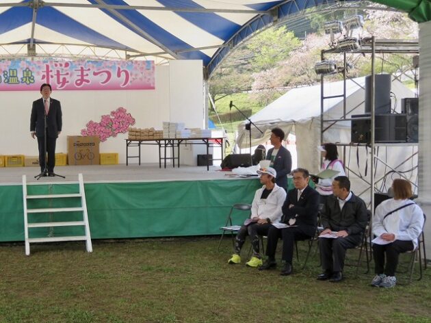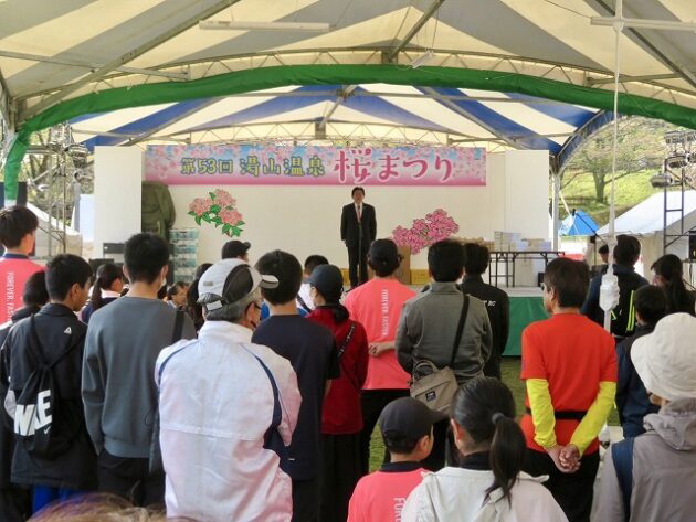 水上村「 第53回 日本一の桜の里「 花より団子マラソン大会 」 」開会式( 水上村・汗の原親水公園「 桜まつり広場 」)
