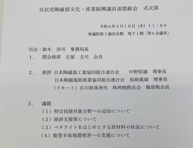 自民党 陶磁器文化・産業振興議員連盟 総会