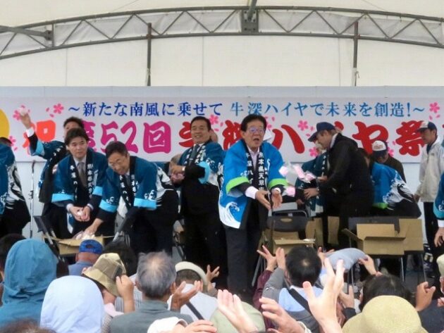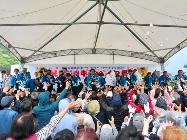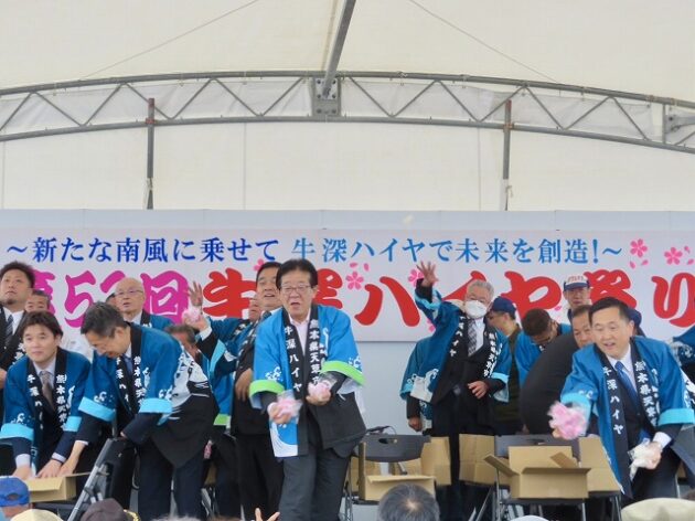 第52回「 牛深ハイヤ祭り 」祝いもち投げ( 天草市 牛深・ハイヤ大橋横芝生広場/お祭り広場特設ステージ )