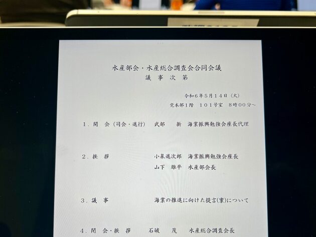 自民党 水産部会・水産総合調査会 合同会議「 海業の振興に向けた提言(案)について 」( 自民党本部 )