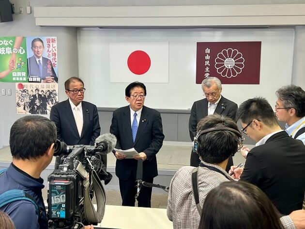 「 政治刷新車座対話 」後のマスコミぶら下がり取材( 自民党岐阜県連 )
