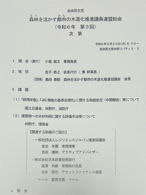 自民党「 森林(もり)を活かす都市(まち)の木造化推進議員連盟 」総会 ※会長代行 兼 幹事長