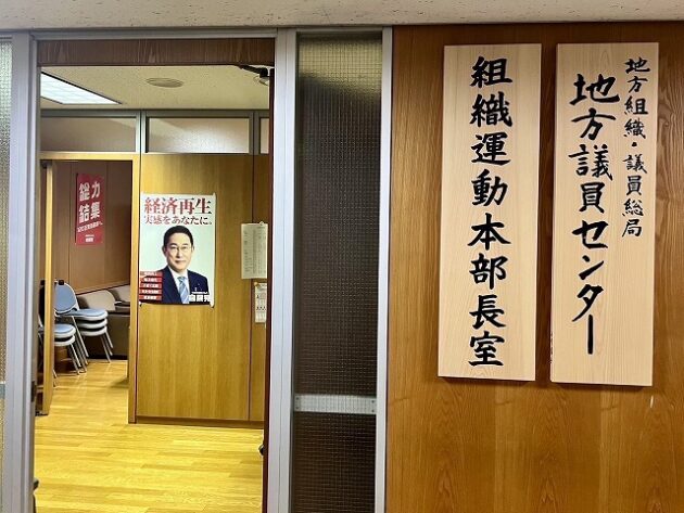 自民党 広報本部 職員との打ち合わせ、組織運動本部 職員との打ち合わせ、決裁( 自民党本部・組織運動本部長室 )