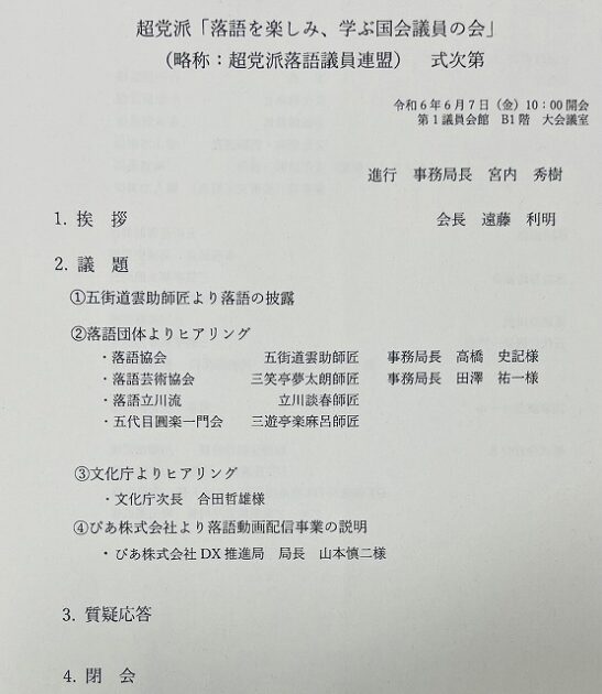 超党派「 落語を楽しみ、学ぶ国会議員の会 」