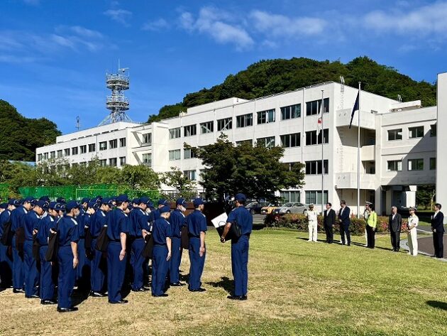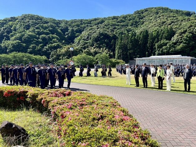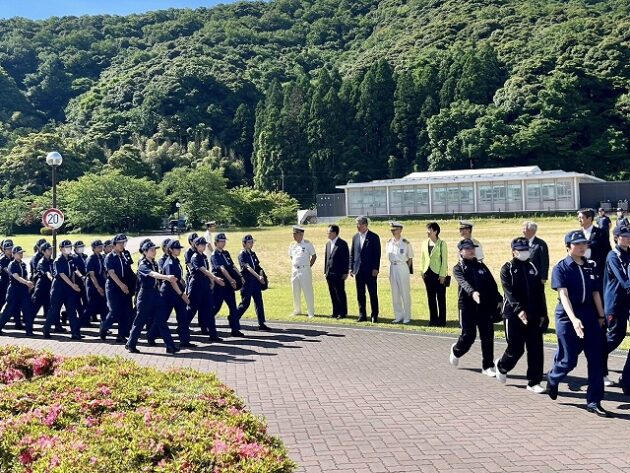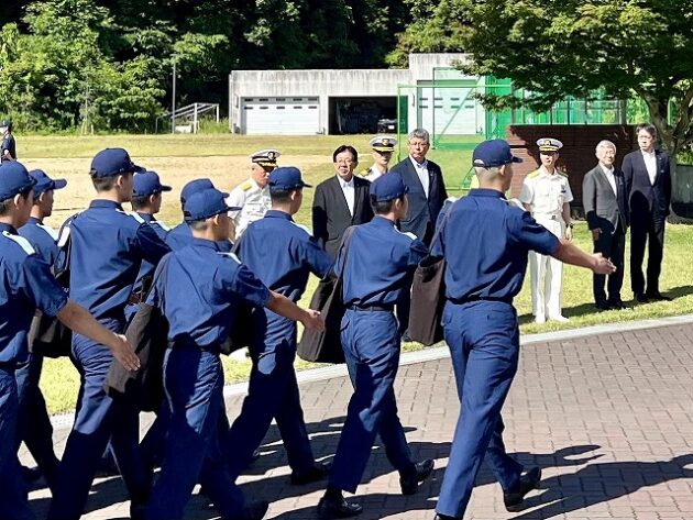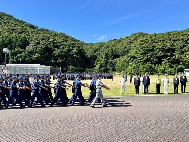 「 海上保安学校 」視察・激励 ②課業 整列( 京都府 舞鶴市 ) ※自民党「 海上保安議員連盟 」金子恭之 会長、高木毅 副会長、有村治子 議員