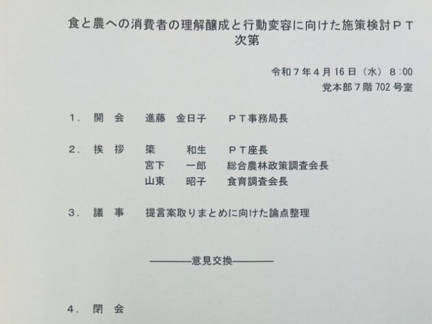 自民党 食と農への消費者の理解醸成と行動変容に向けた施策検討PT