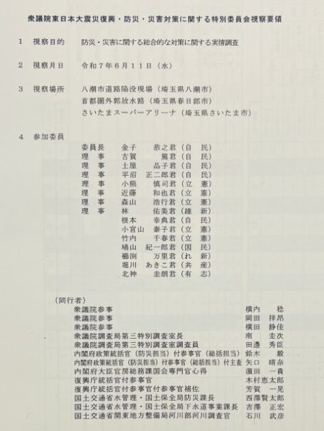 衆議院 東日本大震災復興・防災・災害対策に関する特別委員会「 現場視察( 埼玉県・八潮市道路陥没現場、首都圏外郭放水路、埼玉スーパーアリーナ )」 ※委員長