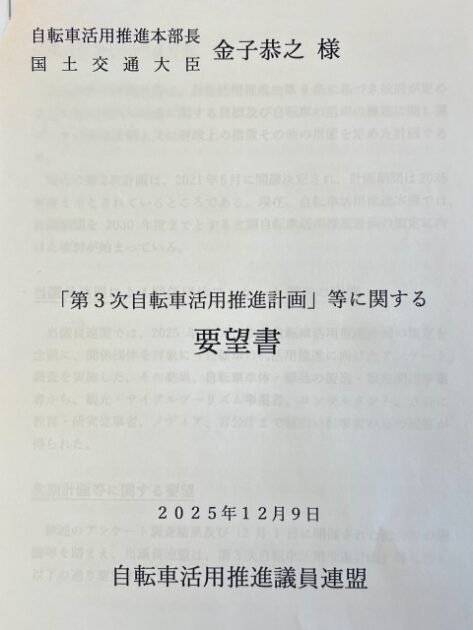 超党派 自転車活用推進議員連盟 要望来省( 国土交通大臣室 )※政府 自転車活用推進本部 本部長