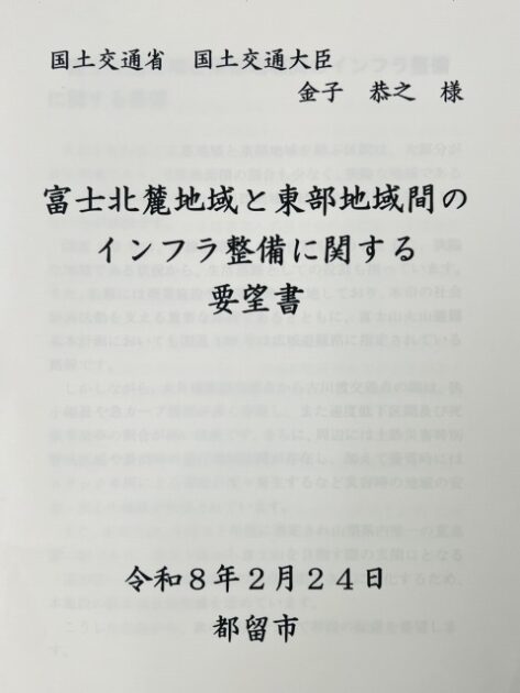 山梨県 都留市・日向 市長 要望来省( 国土交通大臣室 ) ※堀内詔子代議士 同席