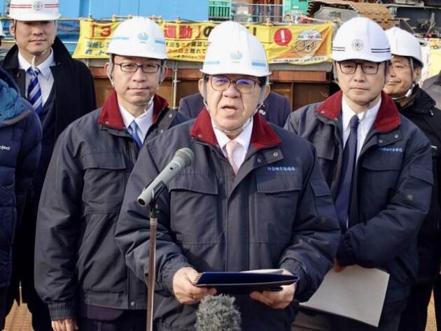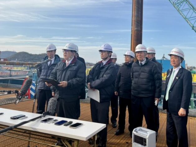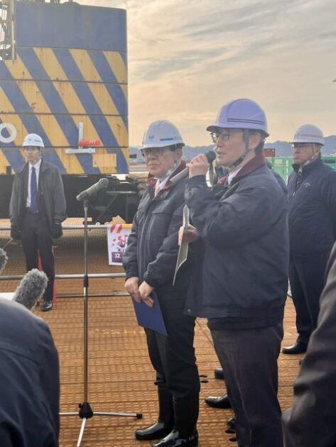 〔 現地視察 〕ぶら下がり会見( 徳島県 徳島市・津田大橋 建設現場 )