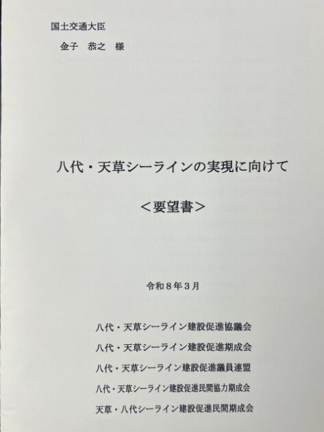 八代・天草シーライン建設促進協議会・木村 会長〔 熊本県知事 〕はじめ役員 要望来省( 国土交通大臣室 )