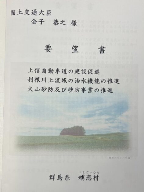 群馬県 嬬恋村・熊川 村長、村議会、JA・商工会・観光協会 代表者 要望来省( 国土交通大臣室 )