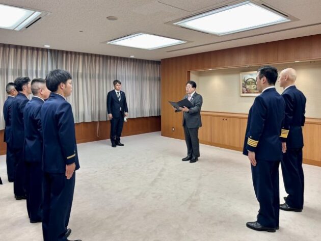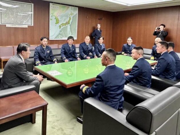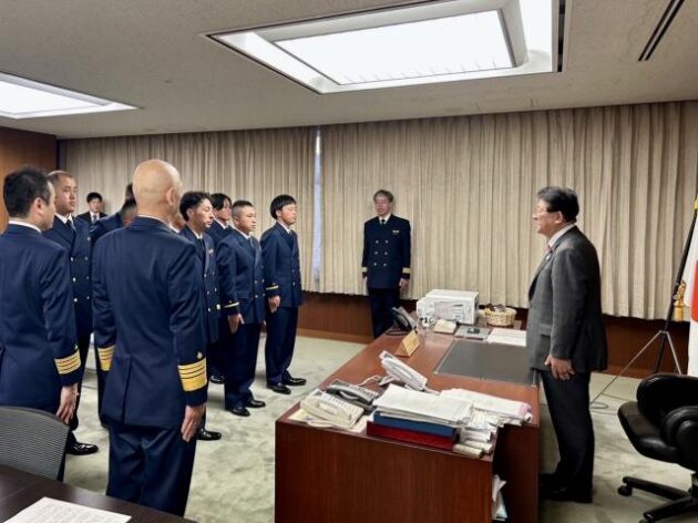 海上保安庁「 ソマリア派遣捜索隊 」帰国報告( 国土交通大臣応接室 )