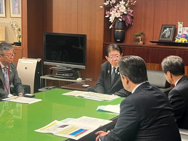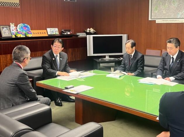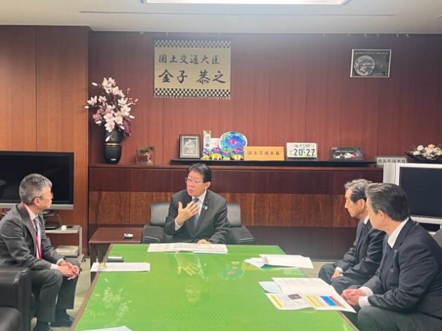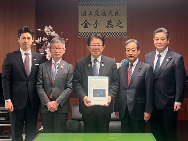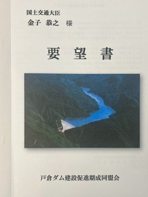 群馬県 戸倉ダム建設促進期成同盟会・梅澤 会長〔 片品村長 〕、星野 顧問〔 県議会議員 〕 要望来省( 国土交通大臣室 ) ※中曽根代議士、清水参議 同席