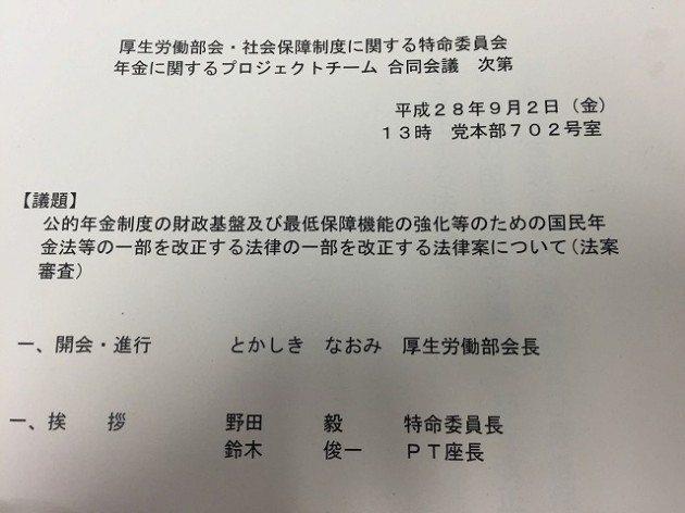 自民党 厚生労働部会・社会保障制度に関する特命委員会 年金に関するPT 合同会議