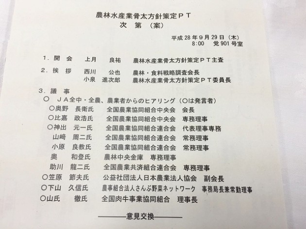 自民党 農林水産業骨太方針策定PT