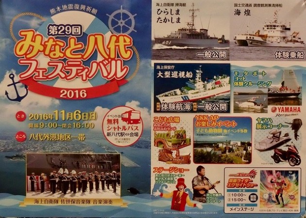 「 2016 みなと八代フェスティバル 」 ※海上保安庁 大型巡視船 おおすみ、国土交通省 調査観測兼清掃船 海煌、海上自衛隊 掃海艇 ひらしま・たかしま 一般公開