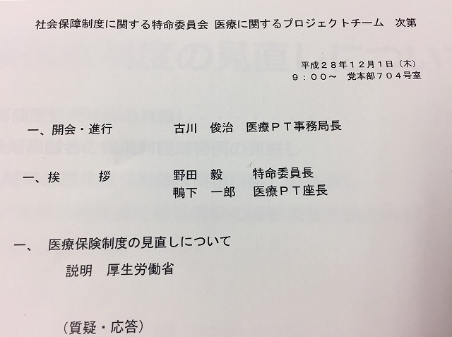 自民党 社会保障制度に関する特命委員会 医療に関するPT