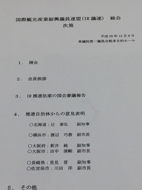 超党派「 国際観光産業振興議員連盟( IR議連 )」総会