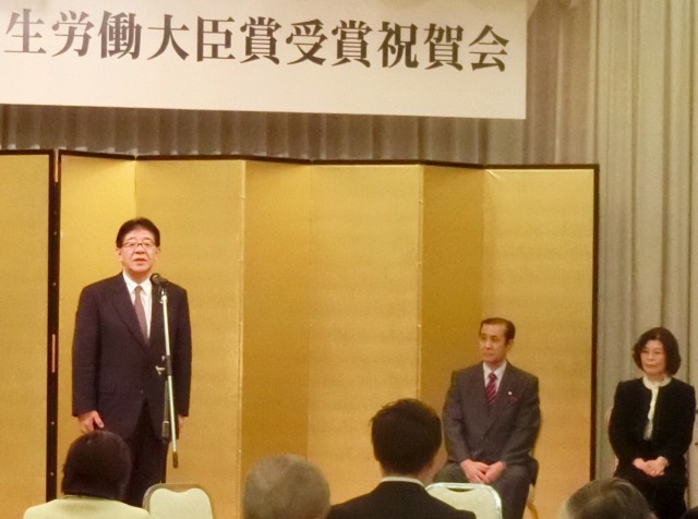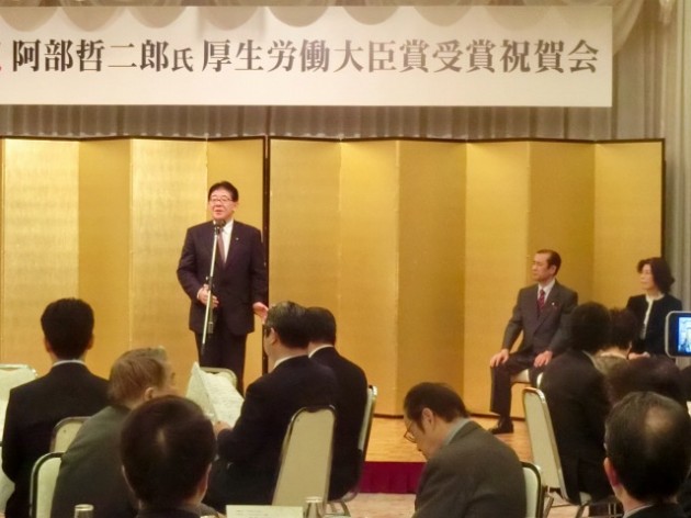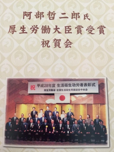 阿部哲二郎氏〔 熊本県理容生活衛生同業組合 八代支部長、熊本県理容生活衛生同業組合 副理事長 〕厚生労働大臣賞 受賞祝賀会( 八代市内 )