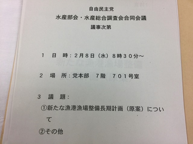 自民党 水産部会・水産総合調査会 合同会議