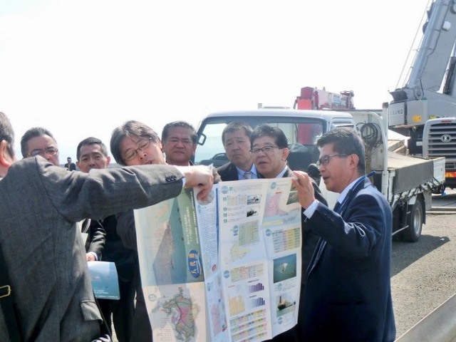 中村八代市長、八代商工会議所、DMOやつしろの方々と八代港 国際クルーズ拠点予定区域 現地視察 ※国土交通省、熊本県より説明