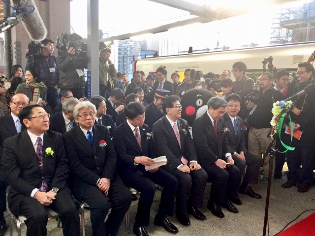 JR九州・新D&S列車「 かわせみ やませみ 」運行開始出発式(JR熊本駅 )