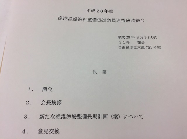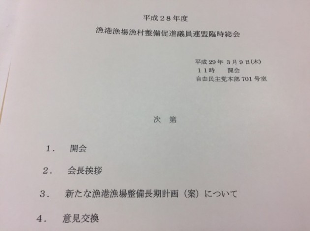 自民党 漁港漁場漁村整備促進議員連盟 臨時総会 ※幹事