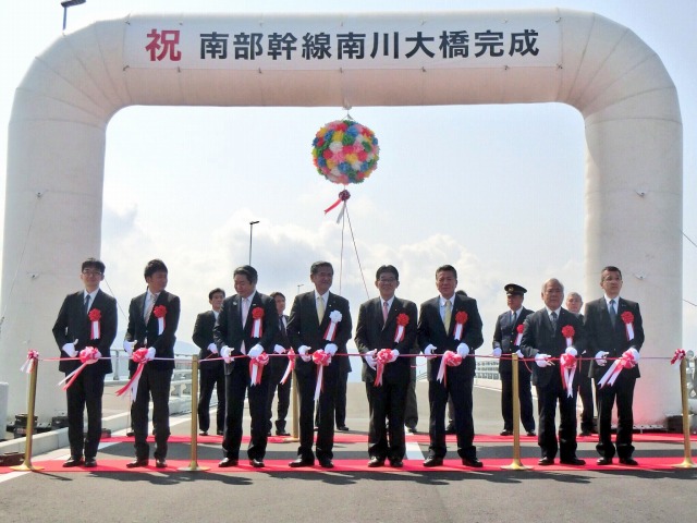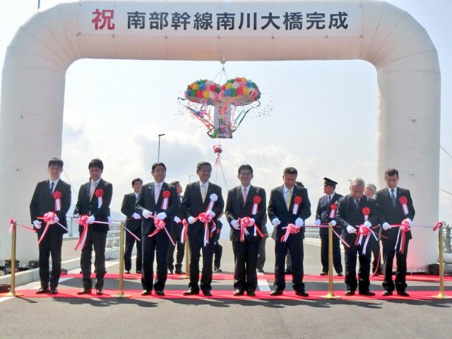 都市計画道路 南部幹線「南川大橋」完成記念式典(八代市内) ※テープカット・渡り初め
