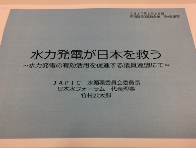 超党派「水力発電の有効活用を促進する議員連盟」総会 ※事務局長代理