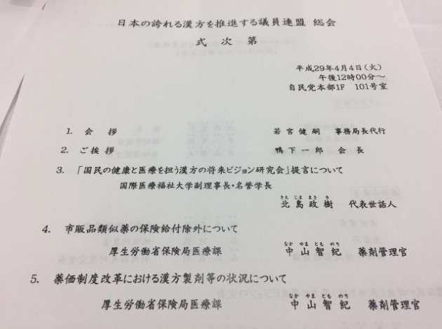 自民党「日本の誇れる漢方を推進する議員連盟」総会 ※幹事