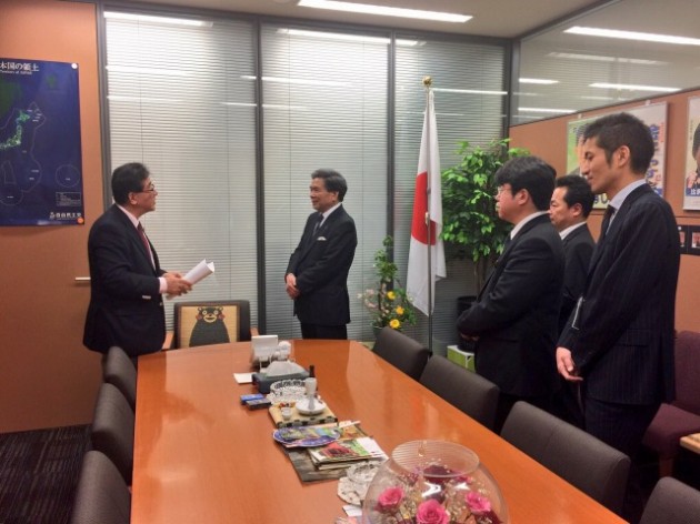 蒲島知事が、4/14 熊本地震 1周年を前に「熊本地震からの復旧・復興の状況」の説明に お見えになりました。