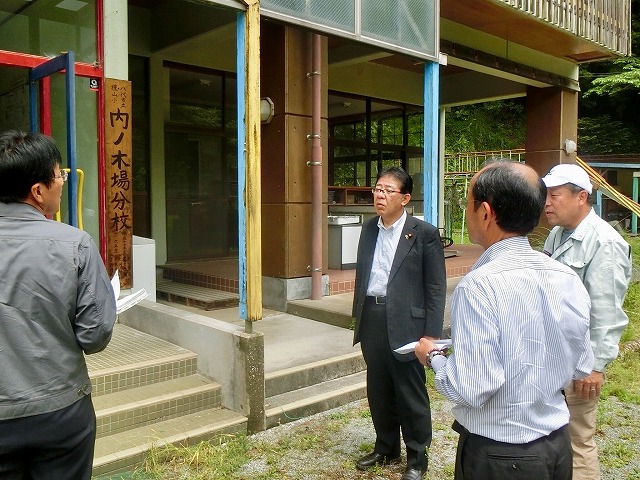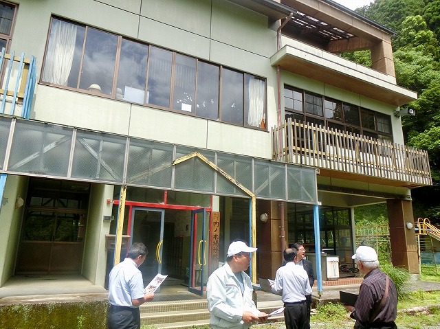 八代市・東陽地域 山村活性化協議会「 山村活性化支援交付金事業 」実施状況 視察② 旧・内の木場分校〔 廃校の利活用、キャンプ、合宿:都市との交流部会 〕 ※東陽地域・白石まちづくり会長、橋本市議ほか同行