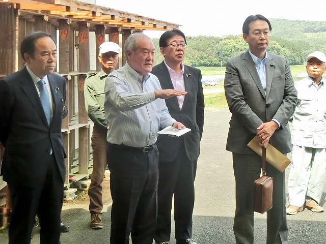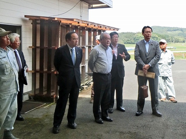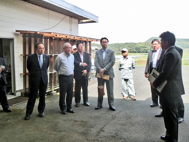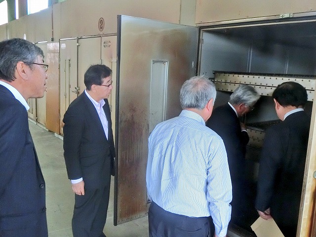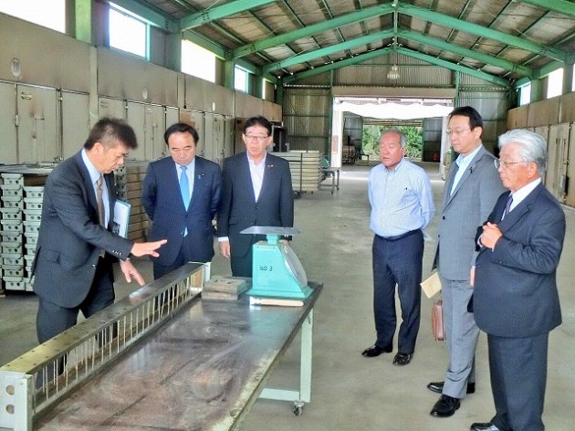 自民党たばこ特別委員会〔 鈴木俊一委員長、江渡聡徳委員長代理、金子恭之副委員長 兼 事務局長、坂本哲志副委員長 〕「 葉たばこ 黄色種 産地 視察① 受委託共同乾燥施設 」( 熊本県・山鹿市 ) ※熊本県たばこ耕作組合長、JT西日本原料本部長 同行