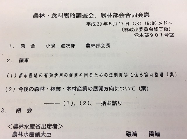 自民党 農林・食料戦略調査会、農林部会 合同会議 ※林政小委員長として出席