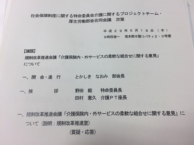 自民党 社会保障制度に関する特命委員会 介護に関するプロジェクトチーム・厚生労働部会 合同会議