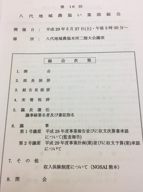 JAやつしろ「第16回 い業部 総会」(JAやつしろ本所)