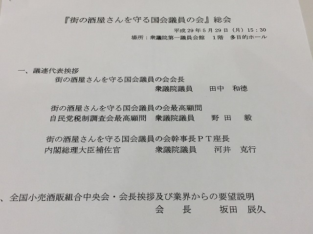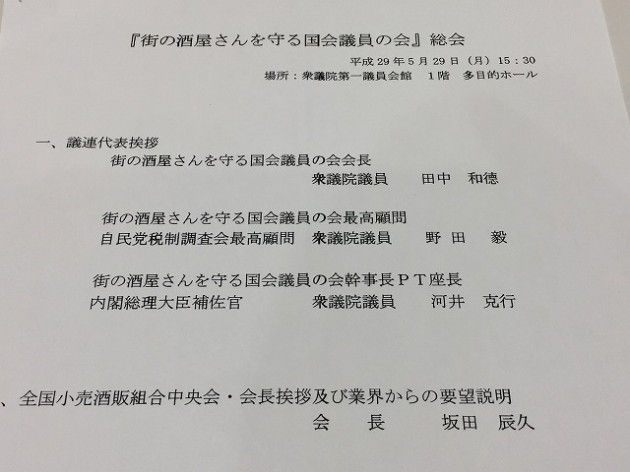 自民党「街の酒屋さんを守る国会議員の会」総会