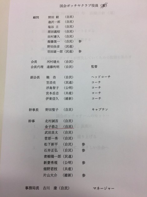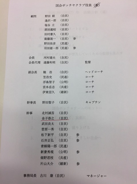超党派「国会ボッチャクラブ」設立総会 ※幹事 就任